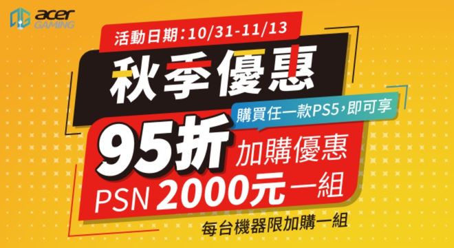 秋季優惠!✨10/31-11/13 買PS5主機 加購PSN2000 享95折優惠
