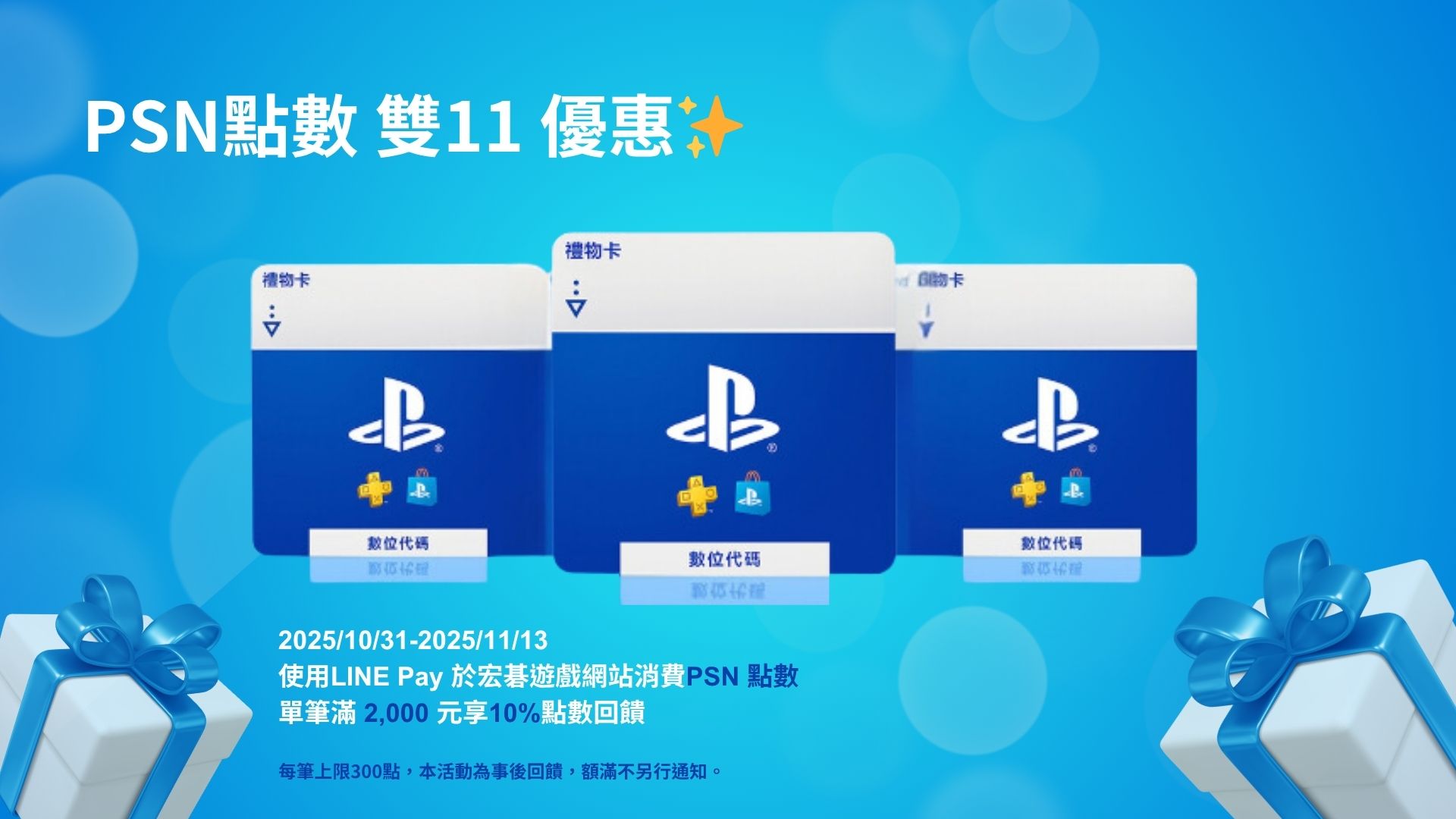限時雙11⏰ 用LINE Pay買PSN點數 單筆滿2千享10%點數回饋✨