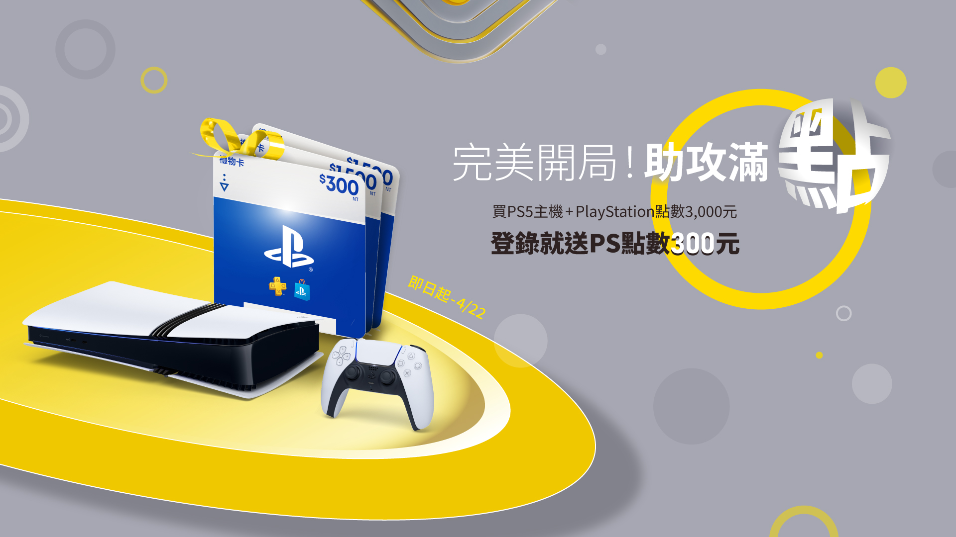 完美開局!買PS5主機加購PS點數3000 點,登錄就送PS點數300助攻滿點!