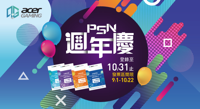 Acer Gaming PSN 週年慶 指定通路買PSN實體卡抽PS Plus會籍‼