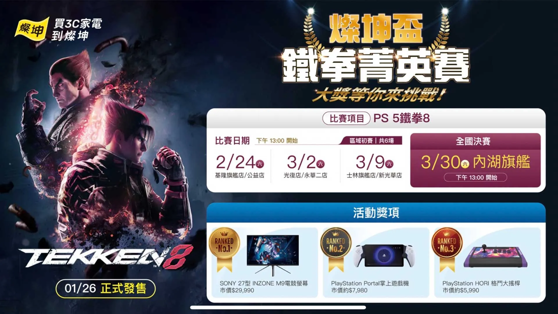 【燦坤盃鐵拳8菁英賽】全台決賽即將開打🥊3.30 燦坤內湖旗艦店 一決高下🔥