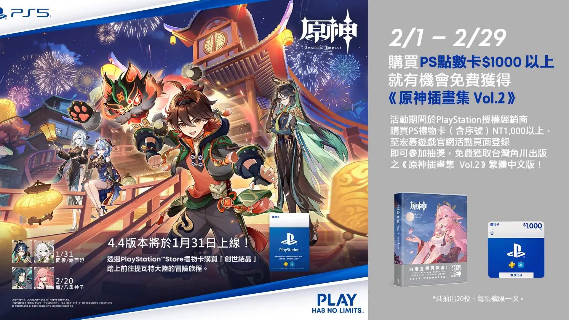 🌟購買PSN點數卡滿千元 即可登錄發票抽 《原神插畫集 Vol.2》🎁