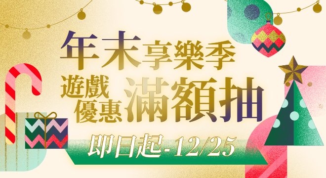 🎄年末享樂季 遊戲優惠滿額抽!🌟購物金、飯店住宿券💰、週邊商品等好禮🎁等你拿!