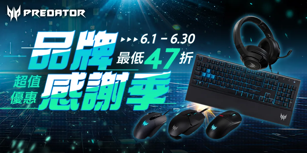 Predator 品牌超值感謝季!6.1-6.30 全場最低47折起🎊