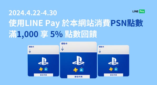 歡慶宏碁遊戲 LINE Pay付款上線 用LINE Pay 消費PSN點數單筆滿千享 5%回饋🎉🎉🎉