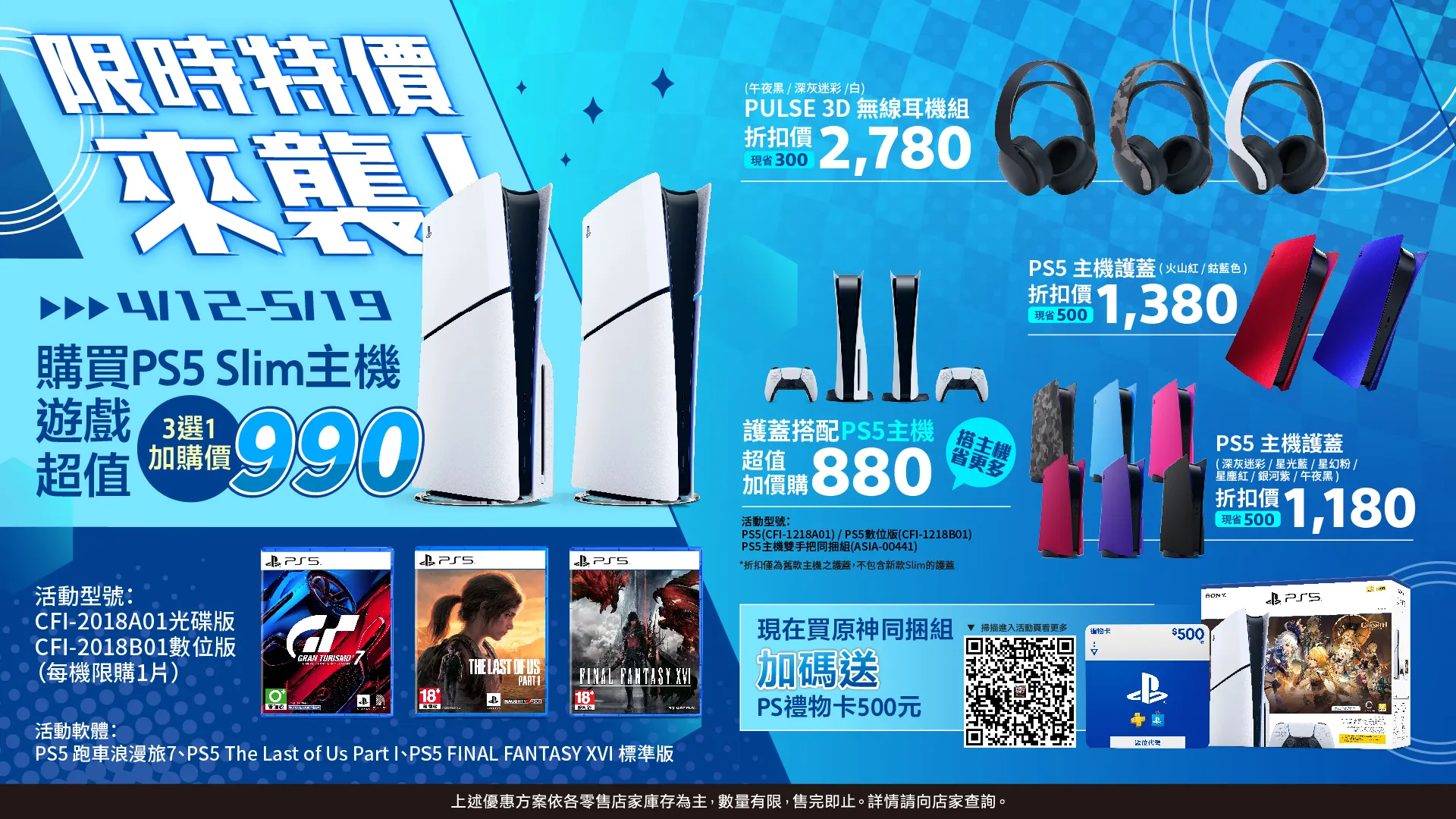 📢限時特價來襲🎉即日起至PS5 Slim主機搭遊戲3選1 加購價990元‼️ 周邊同步優惠🎮