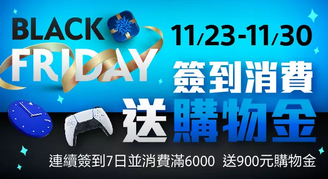 歡慶黑色星期五🎮 簽到消費滿額送購物金再抽特別好禮😎