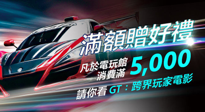 【好評延長至10.31】宏碁遊戲賽車館單筆滿5000送電影票
