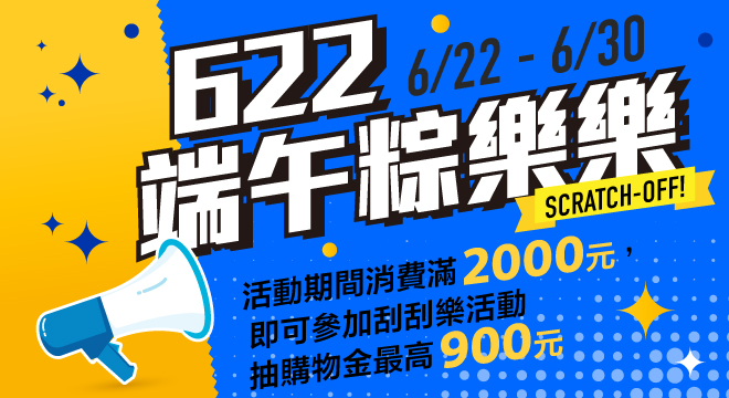 (活動結束) 622 端午粽樂樂- 全館單筆消費滿2000 參加刮刮樂活動抽購物金